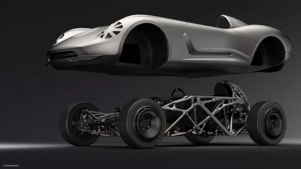 Hackrod的創(chuàng)始人之一是Slade Gardner博士,他是洛克希德馬丁臭鼬廠的前技術(shù)研究員,他是3D打印方法的專家。Speedster車身結(jié)構(gòu)的設(shè)計理念應(yīng)用了空氣動力學(xué),結(jié)構(gòu)簡單的碳纖維外殼,讓人想起經(jīng)典的銀色箭頭。這車輛由特斯拉電動驅(qū)動器驅(qū)動,與內(nèi)燃機(jī)相比,該組件的組件少得多且無需手動變速箱,因此更易于集成。車輛的鋁合金底盤很輕,適合3D打印,幾乎不需要焊縫或螺絲。