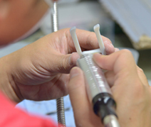 根據(jù)客戶的裝配需求,可采用熱熔方式將銅螺柱嵌入螺桿緊固位置,或?qū)⒈Wo螺桿套筒嵌入攻絲方式,滿足客戶長期使用或反復拆卸裝配的要求。