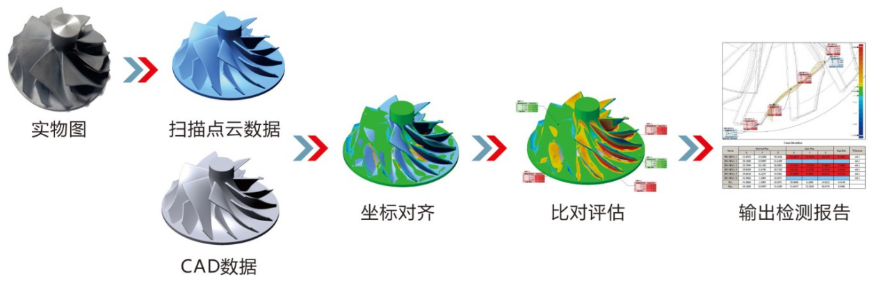 3、在制作階段,可以對生產中的產品進行尺寸檢測,通過三維掃描儀掃描產品后與原始數據進行比對,更加直觀的查看誤差,最大限度的保證了產品的質量。
